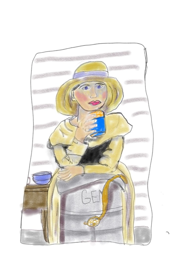 I upgraded from an old fire tablet to an iPad ๐ and I love it! Iโve only had it for a couple hours but still love it. This is my first try at drawing on it. (My great-great grandma)